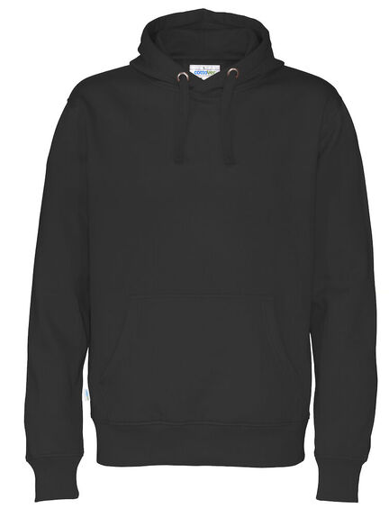 Sweatshirt med hætte i moderne stil. Børstet inderside og med kængurulomme. 2X2 ribstrik med elastan i bunden og på manchetter. Tolags hætte og med kraftig snøre. OEKO-TEX 100 certificeret. Findes i både herre-, junior og damemodel.