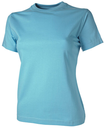 Single jersey T-shirt. Forstærket nakkebånd og dobbelt rib i halsen. Herremodel rundstrikket. Damemodel med sidesøm. OEKO-TEX 100 certificeret.