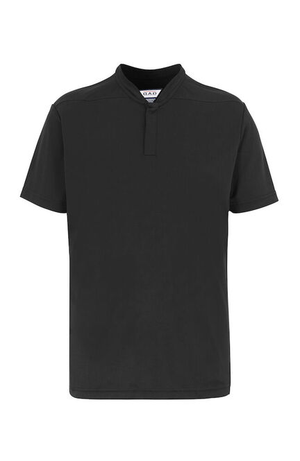 Sporty funktionel polo i en strækbar metervare og en model uden den traditionelle krave. Blødt kompatibelt materiale i en kombination af tone på tone farver udover sort, som er ensfarvet. Moderne pasform med fremspringende sidesøm og søm på skulderen. To skjulte trykknapper i stolpelukning. Findes i herre- og damemodel.