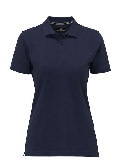 Ensfarvet polo med nakkebånd og sideslids. Herremodel med to knapper i stolpelukning. Damemodel med tre knapper. Broderet logo i nakken. OEKO-TEX 100 certificeret.