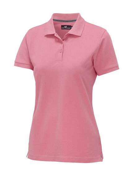 Ensfarvet polo med nakkebånd og sideslids. Herremodel med to knapper i stolpelukning. Damemodel med tre knapper. Broderet logo i nakken. OEKO-TEX 100 certificeret.