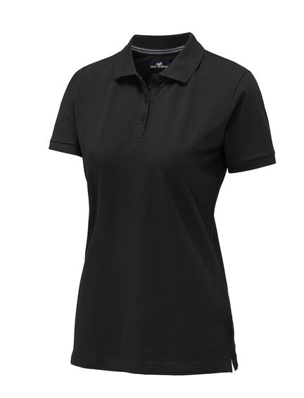 Ensfarvet polo med nakkebånd og sideslids. Herremodel med to knapper i stolpelukning. Damemodel med tre knapper. Broderet logo i nakken. OEKO-TEX 100 certificeret.