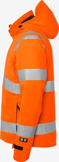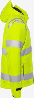 Delvist genbrugsmateriale / Ydermateriale med mekanisk stretch / Vandtæt, vindtæt og åndbar / Tapede sømme / Quiltet for / Aftagelig og justerbar hætte med forstærket skygge / Fleeceforet krave / Vandafvisende lynlås i fuld længde foran med stolpelukning / Brystlomme med skjult lodret lynlås og indvendig strop til ID-kortholder / Forlommer med lynlås / Indvendig meshlomme med elastikkant / Formskårne ærmer / Justerbare ærmer med afrundet overside / Elastiske indvendige manchetter med tommelfingergreb / Ventilerende for i armhuler og ærmemanchetter / Justerbar elastiksnor forneden / Forlænget ryg / Lynlås i rygforet til tryk / Vandsøjletryk på 10.000 mm / Ydermaterialet med åndbarhed på RET <15 / Godkendt i henhold til EN ISO 20471 klasse 3, EN 342 og EN 343 klasse 4/1, ydermateriale godkendt i henhold til EN 343 klasse 4/4 / Godkendt efter 20 vaske / OEKO-TEX®-certificeret.