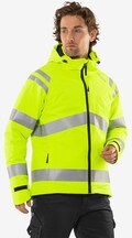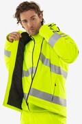 Blød vinterjakke med høj synlighed fremstillet af fleksibelt genbrugsmateriale. Vandtæt arbejdsjakke med tapede sømme og quiltet for, som sikrer blød komfort og god funktionalitet og samtidig holder dig varm og tør. Koncept: Trofta