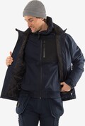 Vandtæt vinterjakke i slidstærkt stretchmateriale fremstillet delvist af genanvendt polyester. Behagelig arbejdsjakke med tapede sømme og blødt quiltet for, der holder dig varm og tør. Udstyret med praktiske lommer og funktioner, som letter det daglige arbejde. Koncept: Haverdal.