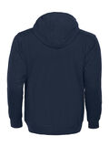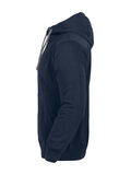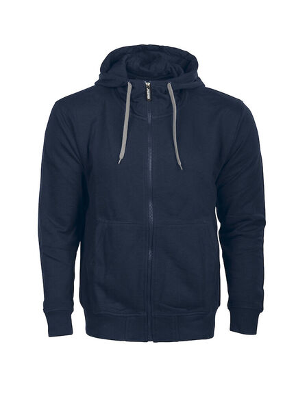 Hættetrøje i moderne snit med børstet inderside. Gennemgående lynlås, der fortsætter lidt op i hætten. To forlommer. Rib i bund og ærmer. Snøre i hætte. OEKO-TEX 100 certificeret.