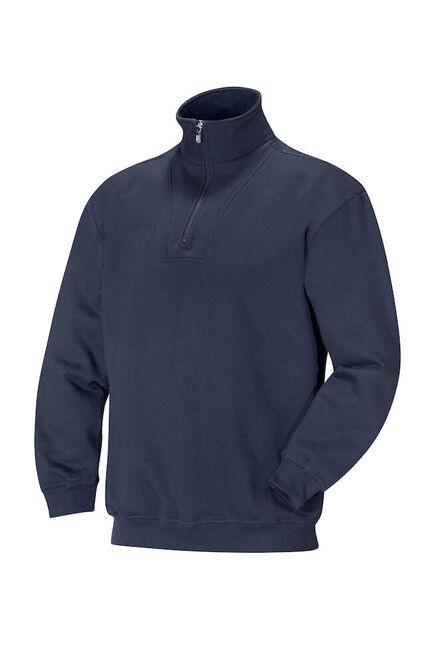 Sweatshirt med halfzip i 100% forkrympet bomuld. Høj krave. Ubørstet. OEKO-TEX 100 certificeret.