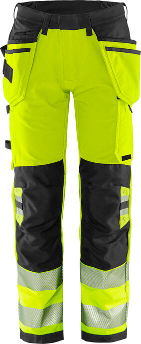 HiVis håndværker stretchbukser lavet af mere bæredygtig 4-vejs stretchmaterialer. Stretchpaneler i taljen for god komfort og forstærket i udsatte områder for ekstra holdbarhed. Med EPD (Environmental Product Declaration). Koncept: Stiby