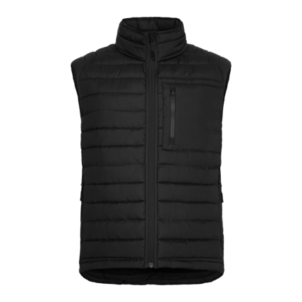 En let polstret quiltet vest i genanvendt polyester. Vindtæt og vandafvisende, yderstof med PFC-fri overfladebehandling med Bionic Eco. To sidelommer og en brystlomme.