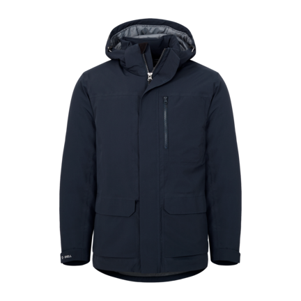 En stilfuld vinterparka i genanvendt polyester. Vind- og vandtæt med tapede sømme. Mange lommer, justerbare manchetter med elastiske indvendige manchetter. Magnetisk lukning i vindslag, forlommer samt aftagelig og justerbar hætte.
