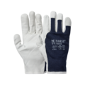 Arbejdshandsker i læder som sikrer en god følelse og maksimal bærekomfort samtidig med at du får den bedste beskyttelse af hænderne. Fremstillet af ultrablødt gedeskind og blåt bomuldsstrik for komfort og bekvemmelighed. Tommelfinger og pegefinger i gedeskind, indsyet elastik ved håndleddet. Handsken er velegnet til brug ved lette opgaver i byggebranchen og opgaver indenfor forsendelse, lager og logistik.