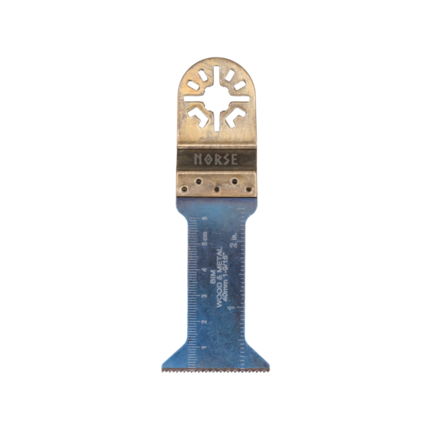 Multicutter bimetal klinge med synlige trætænder til alle træ-, gips- og plastmaterialer. Ekstremt lang levetid, fremragende skærekvalitet og uovertruffen arbejdshastighed. Yderst robust, tåler eventuelle søm i træet (op til ca. Ø 4 mm), murværk mv.