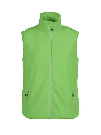 Børstet fleecevest. Kontrast YKK-lynlåse på lommer og front. Elastisk bånd i bunden. Findes i både herre- og damemodel.