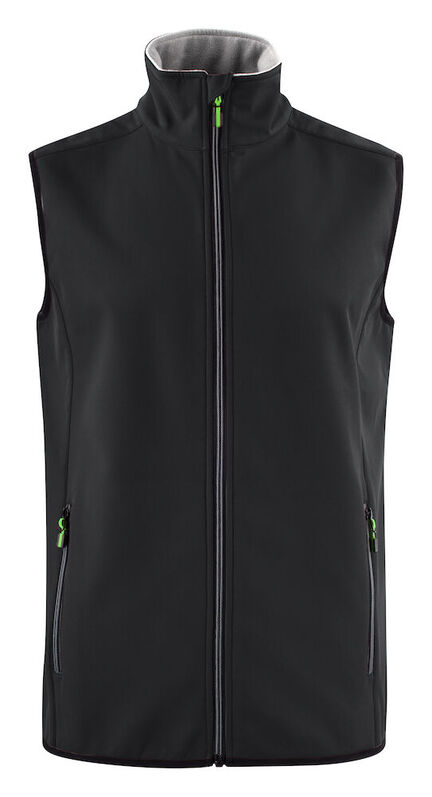 Softshellvest i strækbar metervare. Tofarvet lynlås foran og på lommer. Elastisk bånd i bunden og på ærmer. Pullers kan tilkøbes i flere farver. Findes i både herre- og damemodel.