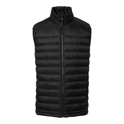 Opdateret letvægtsvest med stof, polstring og lynlåse lavet af genanvendte materialer. Vesten har to praktiske sidelommer med lynlåse. Elastikbånd med heatprint ved armhulerne. Vesten er en del af "The Mix Concept" og kan bæres separat eller nemt fastgøres til Ames-skaljakken eller Ames-parkaen som en mellemlagsvest.