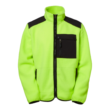 Sherpa-fleece, der er blød og behagelig på indersiden og fluffy på ydersiden. Denne jakke har forstærkede sektioner på skuldre og yoke. To sidelommer med lynlåse og paspolerede lommer. Dobbeltfunktion brystlomme - én med klap, én med lynlås. Alle vævede dele af jakken er sorte. Buet lavere kant på bagsiden med diskret SW-gummimærke.