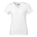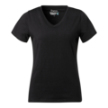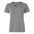 T-shirt i Fairtrade-certificeret bomuld med strækmateriale for en behagelig pasform. Stilfuld v-udskæring og flot kvindekant. GOTS-certificerede farver inkluderer hvid, marineblå, mørk oliven, kirsebær, indigo og sort. OCS-certificeret farve er mellemgrå melange.