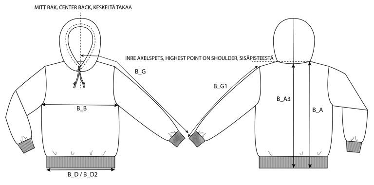 Traditionel sweatshirt med flatlock-sømme og dobbelt stofhætte. Gennemgangslomme foran.