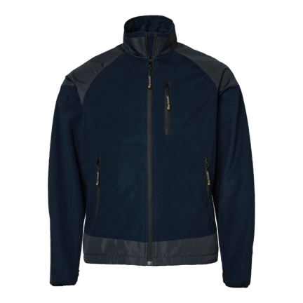 Trelags vindtæt fleecejakke med fuld lynlås. To forlommer og en brystlomme med lynlås. En indvendig lomme og en telefonlomme med lynlås. Snøresnor i kanten. Forstærket på udsatte områder. Vind- og vandtæt (ingen tapede sømme) med enestående åndbarhed.